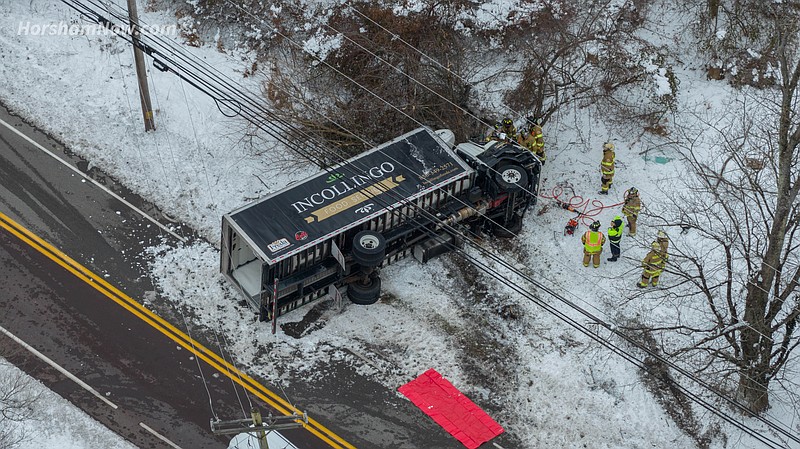 The crash was reported at approximately 1:52 p.m. According to witnesses at the scene, an Incollingo Food Service truck slipped onto its side. The driver of the vehicle was pronounced dead at the scene, according to officials.
