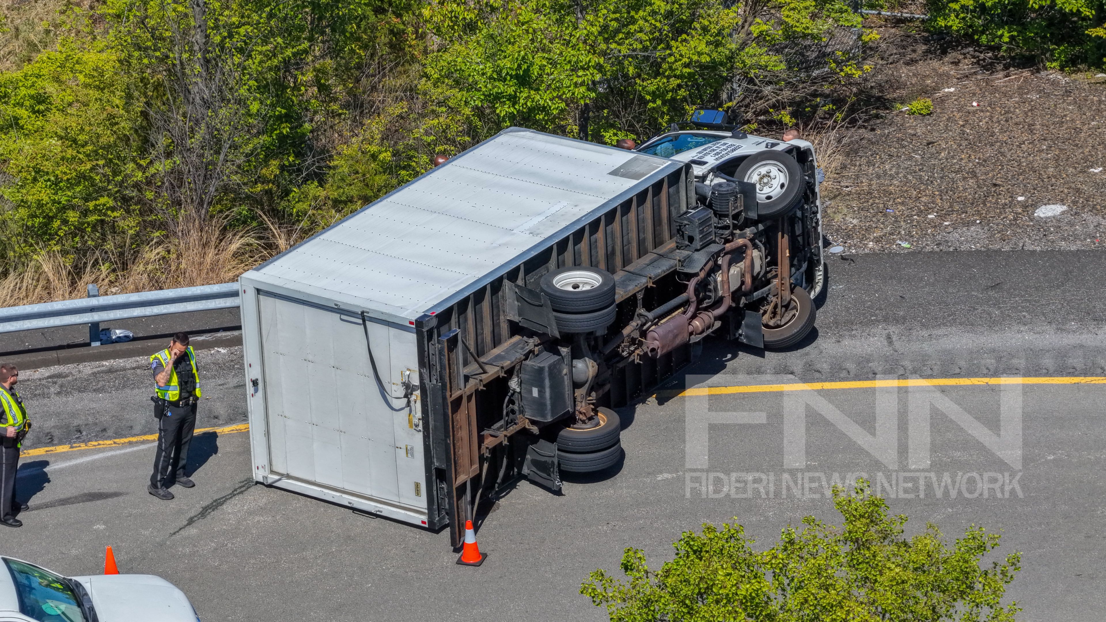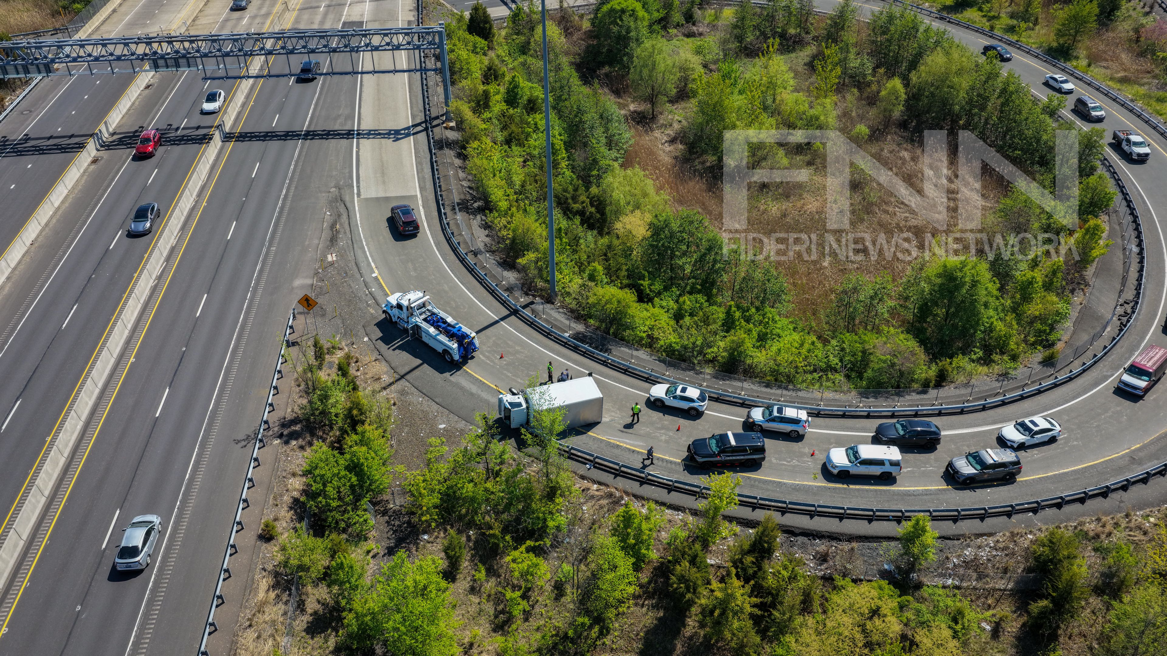 The incident occurred around 2:31 p.m. at the ramp connecting Interstate 276 to Route 309 southbound in Upper Dublin Township. First responders arrived to find the overturned truck blocking part of the roadway.