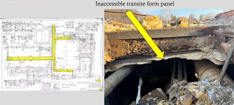 The administration building has been completely leveled, and overall demolition is proceeding smoothly. One of the more complex challenges involves the removal of transite panels, a type of asbestos-containing material, from underground utility tunnels. These panels form part of the concrete trench ceiling and must be removed carefully due to their proximity to electrical conduits.
